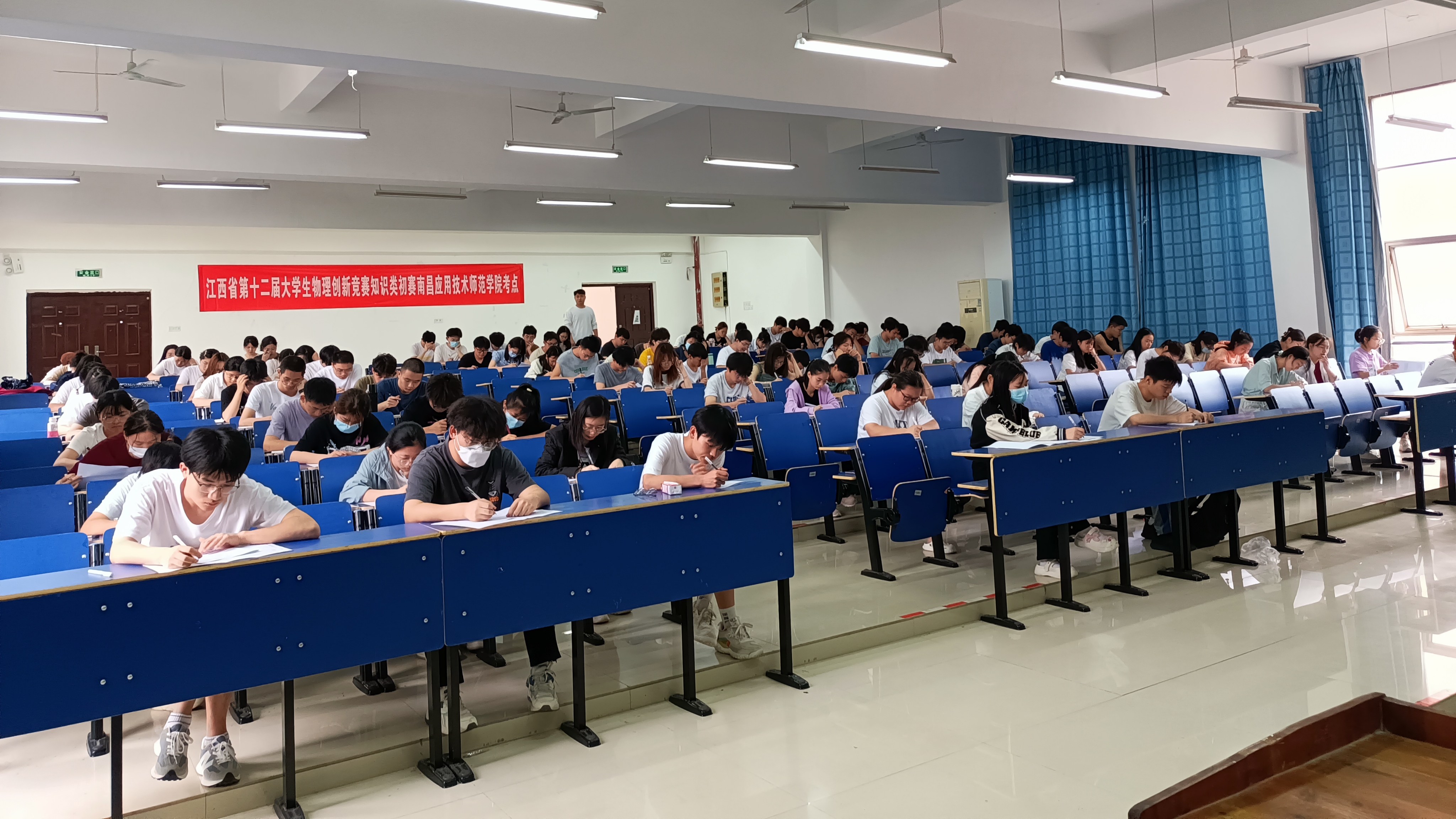 5月20日,2023年江西省第十二届大学生物理创新大赛知识类初赛在各高校举行,我校赛场设在教学楼阶梯教室,共有183名同学参加了本次初赛,比赛时长3小时。