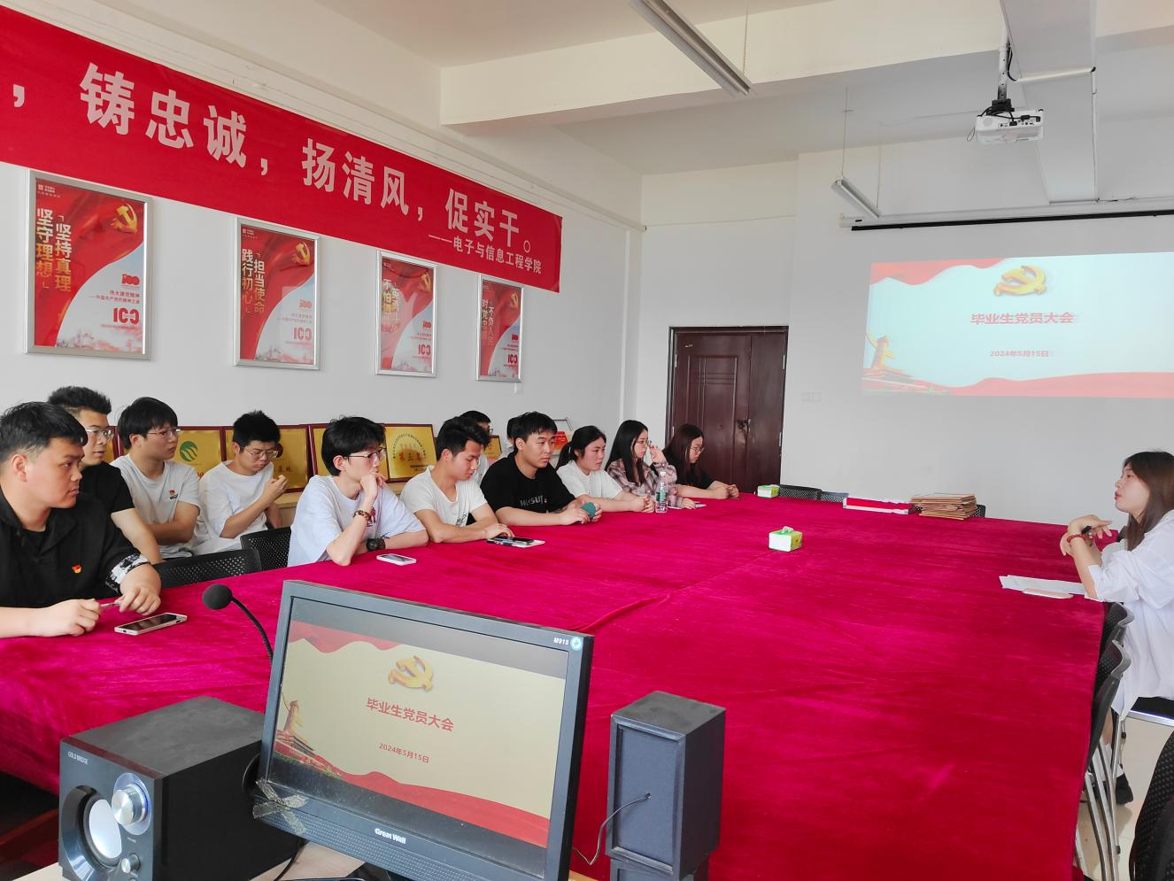 为贯彻落实全面从严治党要求,做好高校毕业生党员组织关系管理工作,进一步加强毕业生党员教育管理,坚定党员理想信念,提高党性修养,更好地发挥党员的先锋模范作用。今年会jinnianhuicom于2024年5月15日在1407党员活动室召开毕业生党员大会,此次大会由第二党支部书记程明珠同志主持,毕业生党员同志参加本次会议。