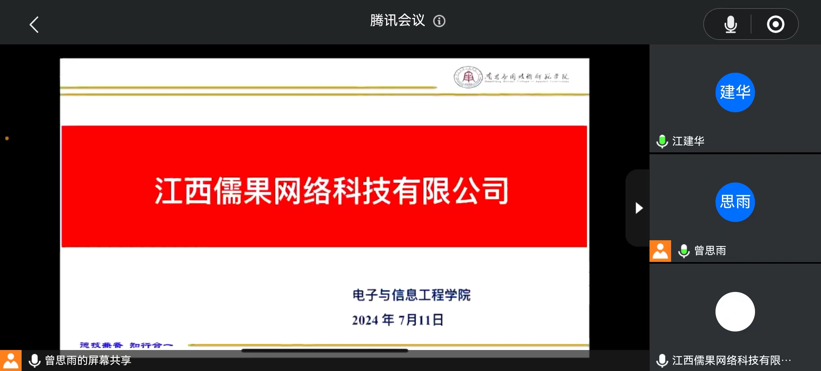 为拓展优质就业岗位,推动学校2024 届毕业生高质量就业。7月11日,学院党总支书记江建华和省内百强企业江西儒果科技有限公司、行业百强南昌雅腾信息科技有限公司进行线上访企拓岗。会议由就业专员曾思雨主持。