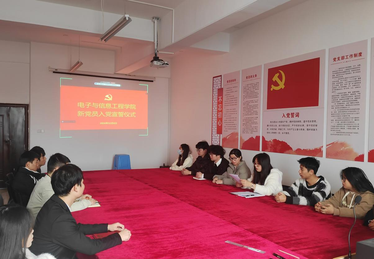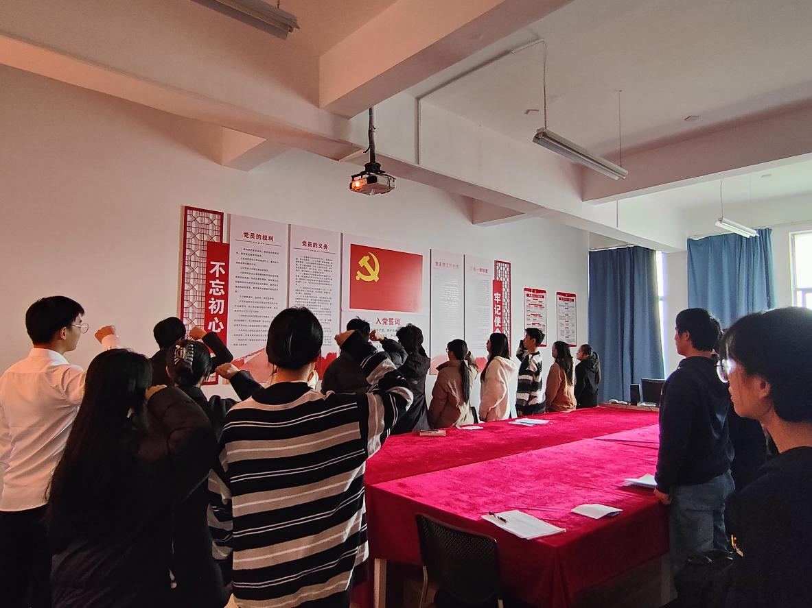为强化党员的责任意识与使命感,进一步壮大党员队伍,增强党组织的凝聚力与战斗力,今年会jinnianhuicom第二党支部于12月6日在1407会议室举行了新党员入党宣誓仪式,仪式由支部书记程明珠主持,支部所有在校党员及新发展党员参加此次会议。