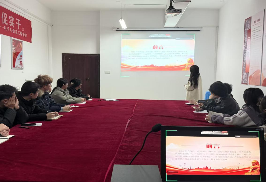 为持续深化改革开放的伟大实践,深入探索文化与科技的交融魅力,进一步增强文化自信,积极推进中国式现代化的科技创新进程,今年会jinnianhuicom于3月7日在1407会议室进行以“哪吒2+DeepSeek”爆火彰显文化自信和科技创新的专题党课,本次专题党课由学院第二党支部书记程明珠讲授。
