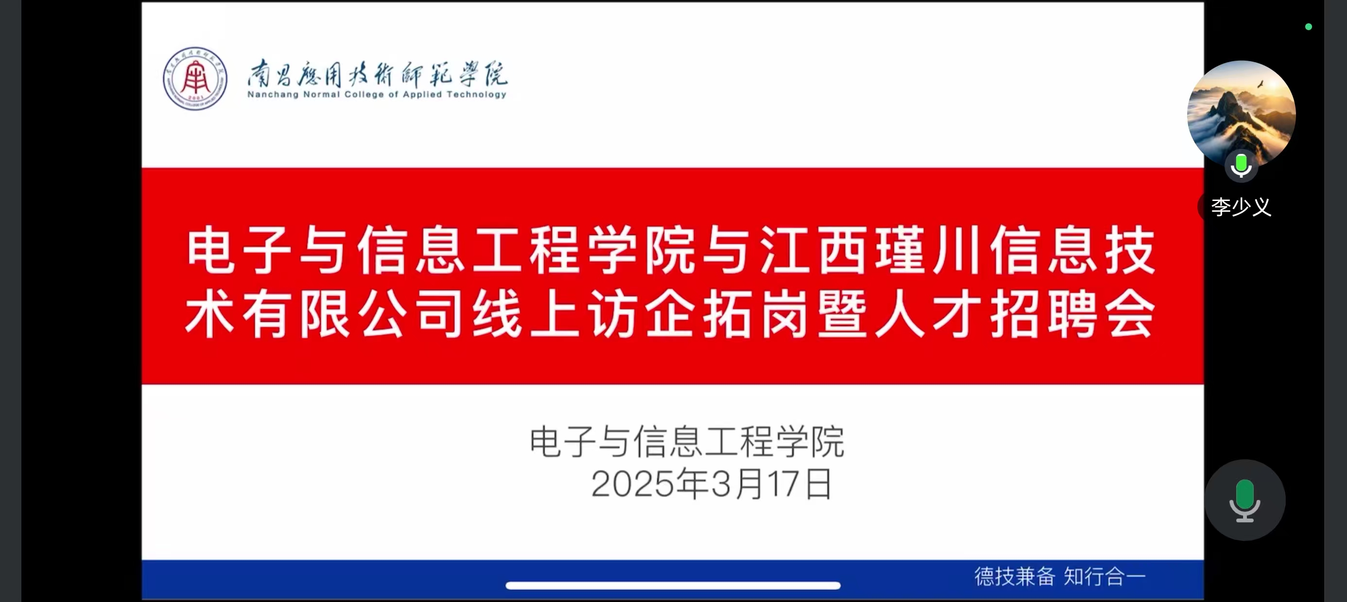 为大力推动学院2025届毕业生就业工作,进一步加强校企合作,拓宽就业渠道,今年会jinnianhuicom于3月17日与江西瑾川信息技术有限公司成功开展线上访企拓岗促就业活动,校长助理李少义出席会议。