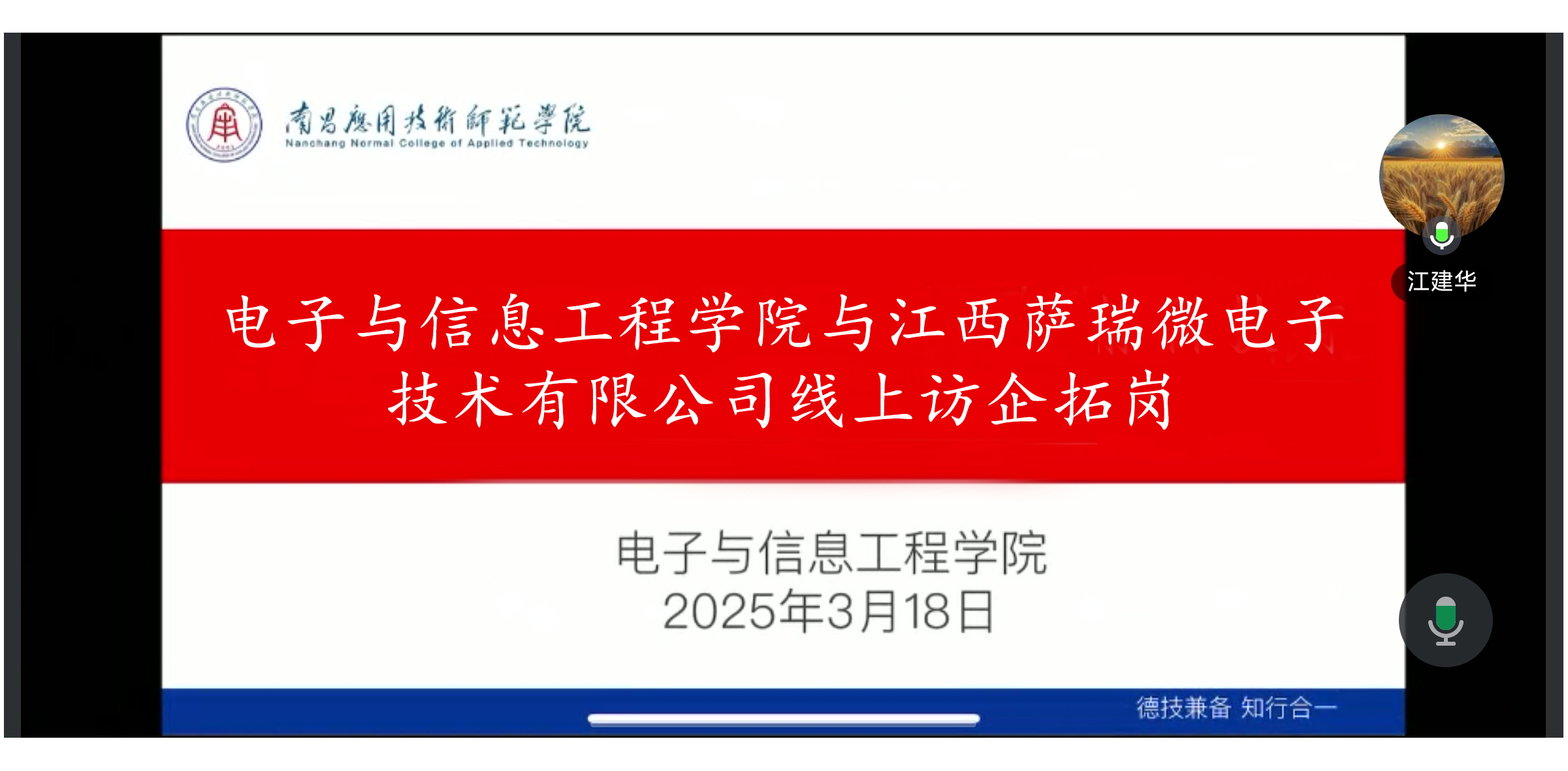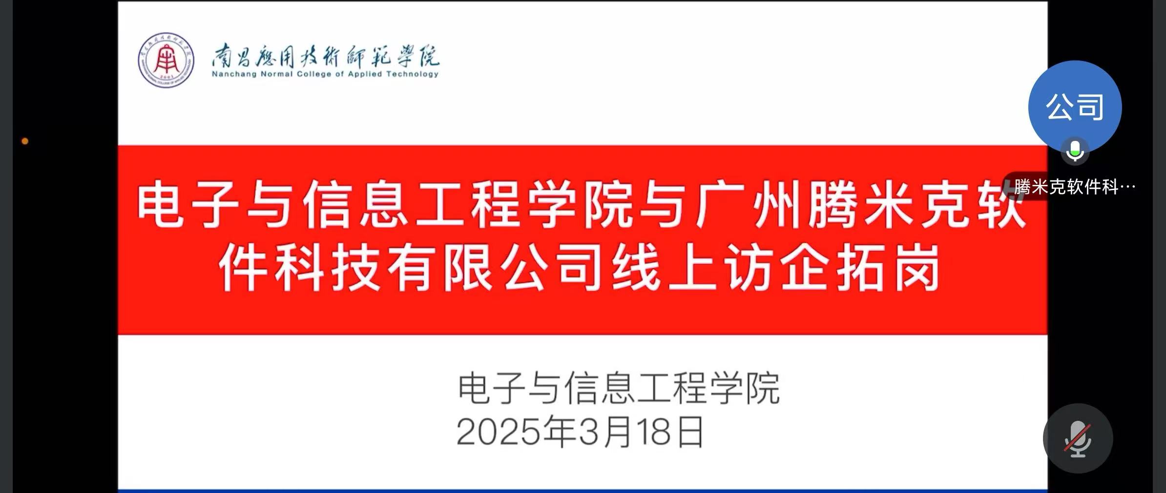 为更好落实党中央、国务院“稳就业”“保就业”决策部署,深化产教融合、校企合作,全力促进今年会毕业生高质量充分就业。今年会党总支书记江建华于3月18日在腾讯会议与江西萨瑞微电子技术有限公司和广州腾米克软件科技有限公司企业负责人开展访企拓岗促就业洽谈会。
