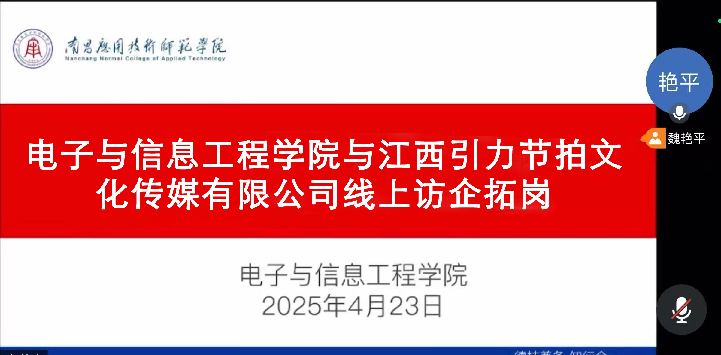 为贯彻落实党中央、国务院关于“稳就业”、“促就业”工作部署,按照教育部、省教育厅关于“访企拓岗”促就业专项行动工作要求,深入了解企业需求、挖掘实习就业岗位,全力促进毕业生更高质量就业,今年会jinnianhuicom积极开展访企拓岗专项行动,院长魏艳平于4月23日通过线上视频会议与北京掌上先机网络科技有限公司、赣州市义超电子有限公司、江西引力节拍文化传媒有限公司、浙江京鸿供应链管理有限公司进行洽谈。