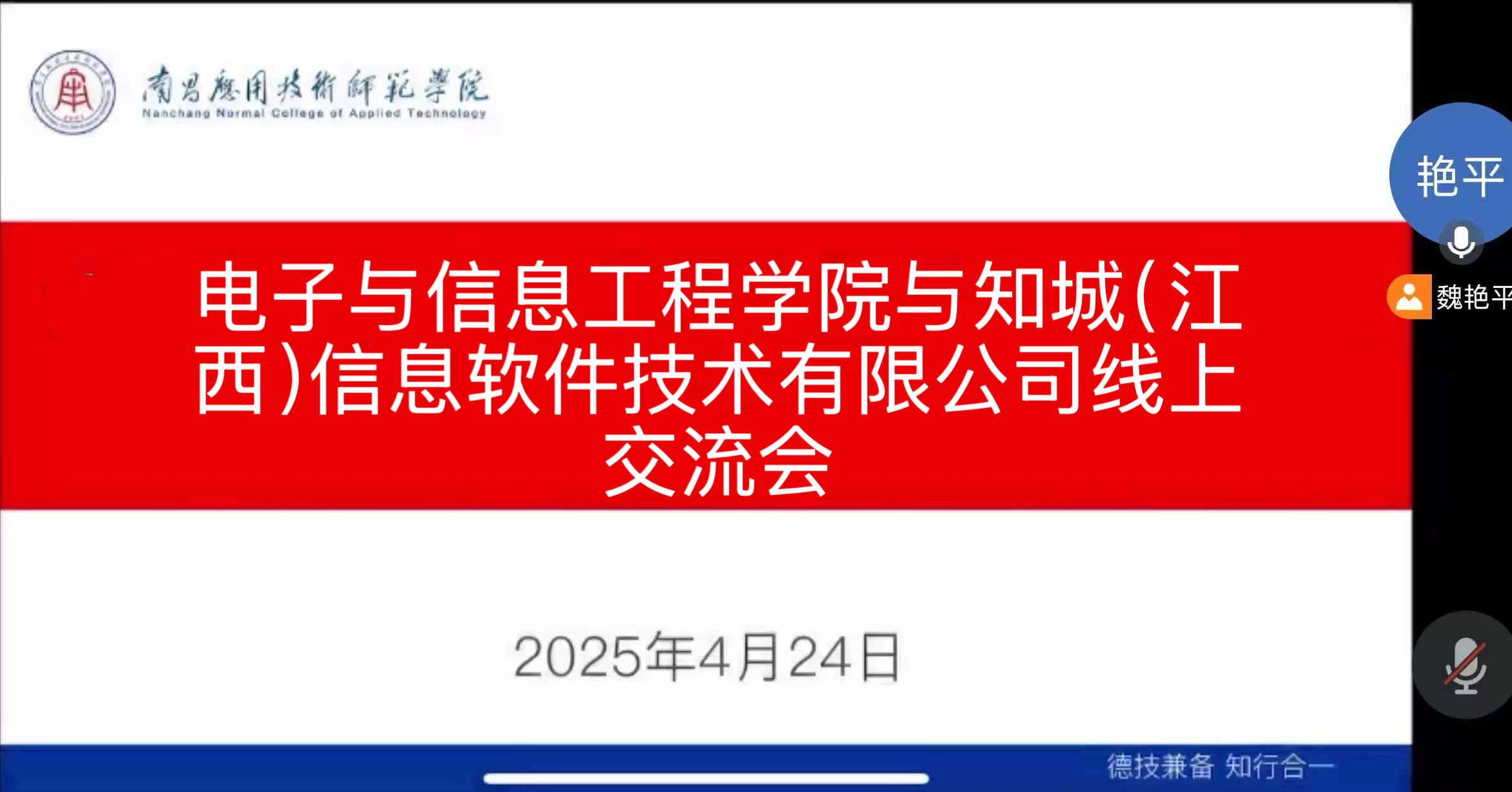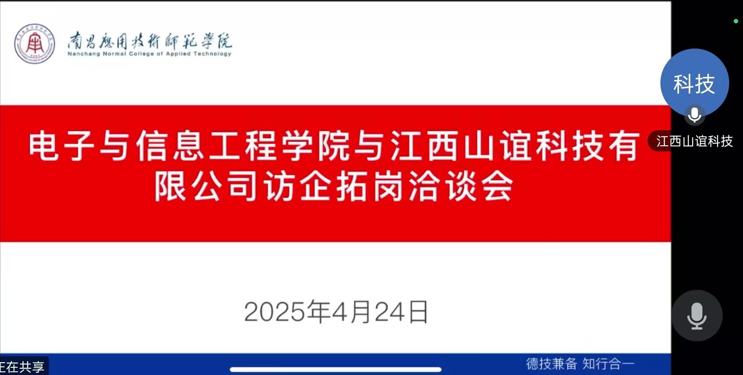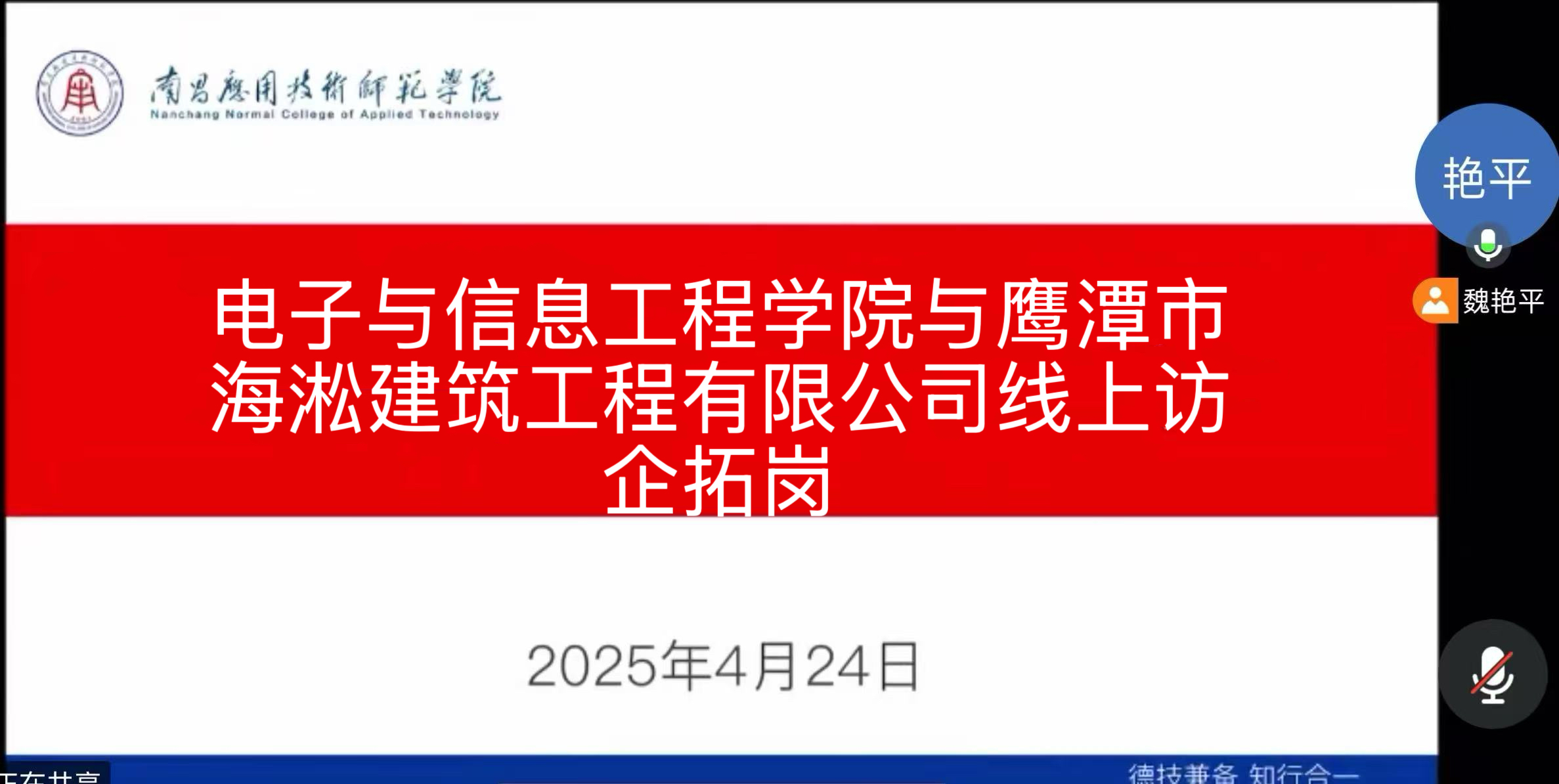 为深入贯彻落实教育部2025届全国高校毕业生春季学期就业重点工作推进视频会议部署要求,抢抓春季促就业攻坚期,深化校企合作,拓宽就业渠道,助力毕业生高质量就业,4月24日,今年会魏艳平院长通过线上腾讯会议与鹰潭市海淞建筑工程有限公司、江西山谊科技有限公司、南昌帧率互娱文化传媒有限公司、知城(江西)信息软件技术有限公司进行深入交流。
