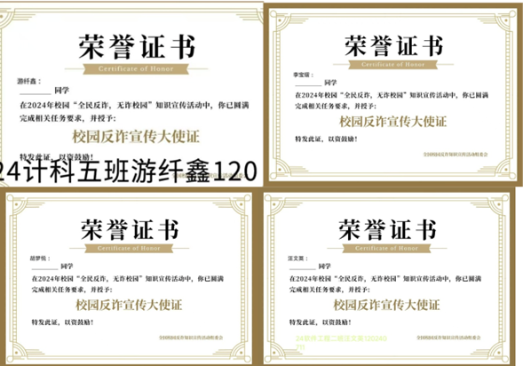 本次活动通过线上学习与定时训练,警示广大学生关注日趋猖獗的诈骗手段,并以每位同学为宣传点,鼓励他们广泛传播与分享经验,提升反诈意识在校园内的认知广度与深度,让同学们意识到诈骗并非遥不可及,而是潜伏在我们身边,与每个人的切身利益息息相关。未来,今年会将会继续推进反诈宣传工作常态化、制度化,为创建“无诈校园”不懈努力!