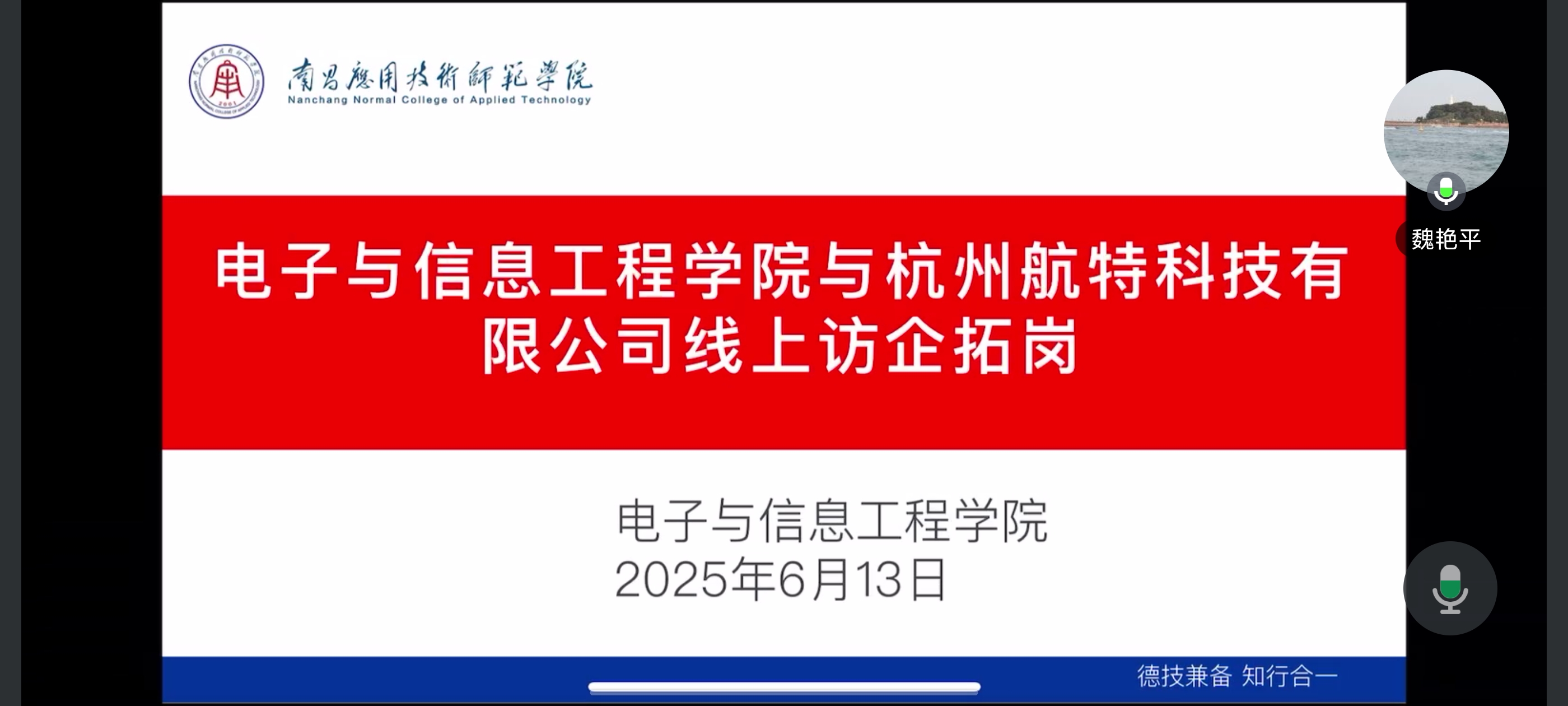 为进一步深化校企协同发展,精准对接企业需求,拓宽毕业生就业岗位,校长助理李少义和院长魏艳平于6月12日与上海聚微计算机技术有限公司、赣州华优出行科技有限公司、杭州航特科技有限公司、江西圆梦会展有限公司、宜春市山腾电子有限公司开展线上交流工作。