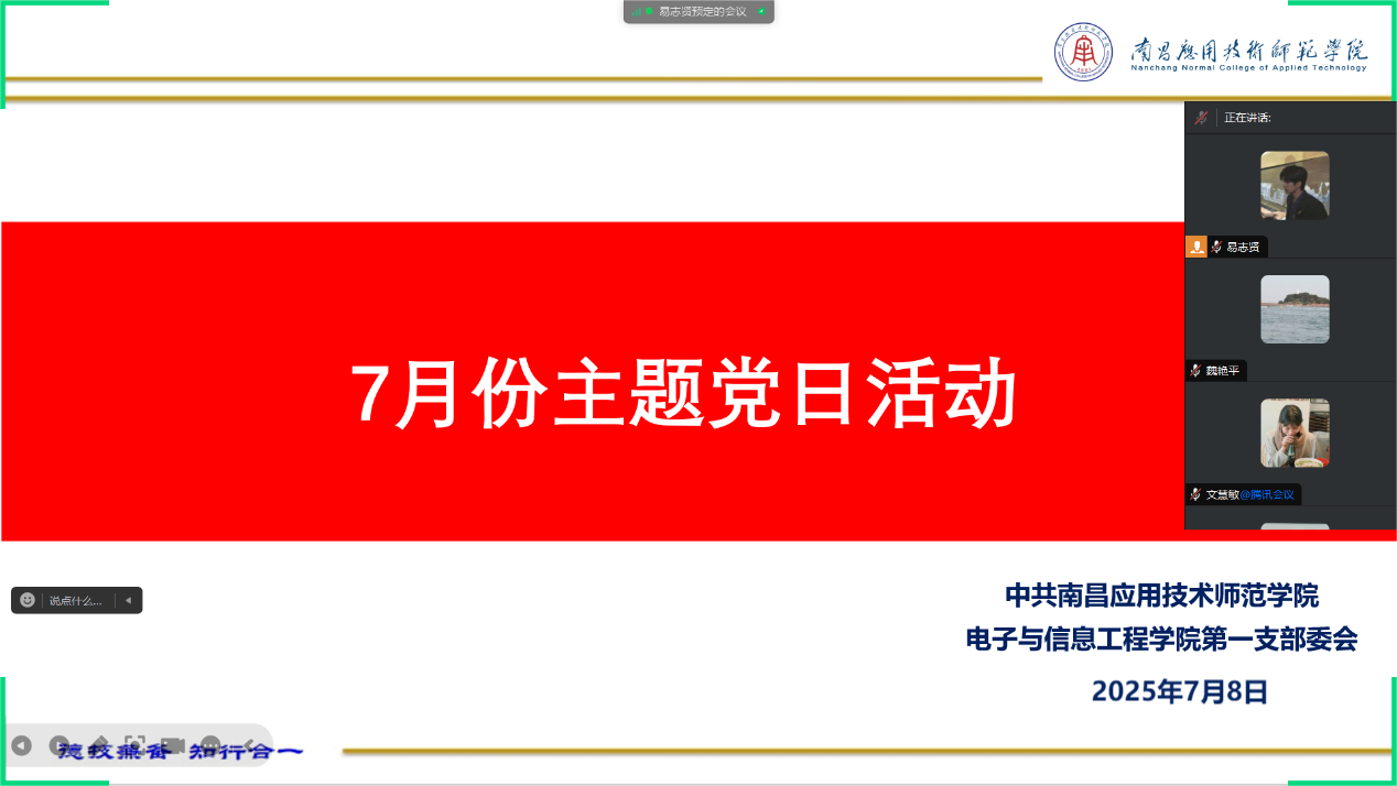 为庆祝中国共产党成立104周年,弘扬伟大建党精神,结合深入贯彻中央八项规定精神学习教育。今年会jinnianhuicom第一支党部于7月8号开展7月主题党日活动。此次活动由党支部书记魏艳平主持,全体党员参加。