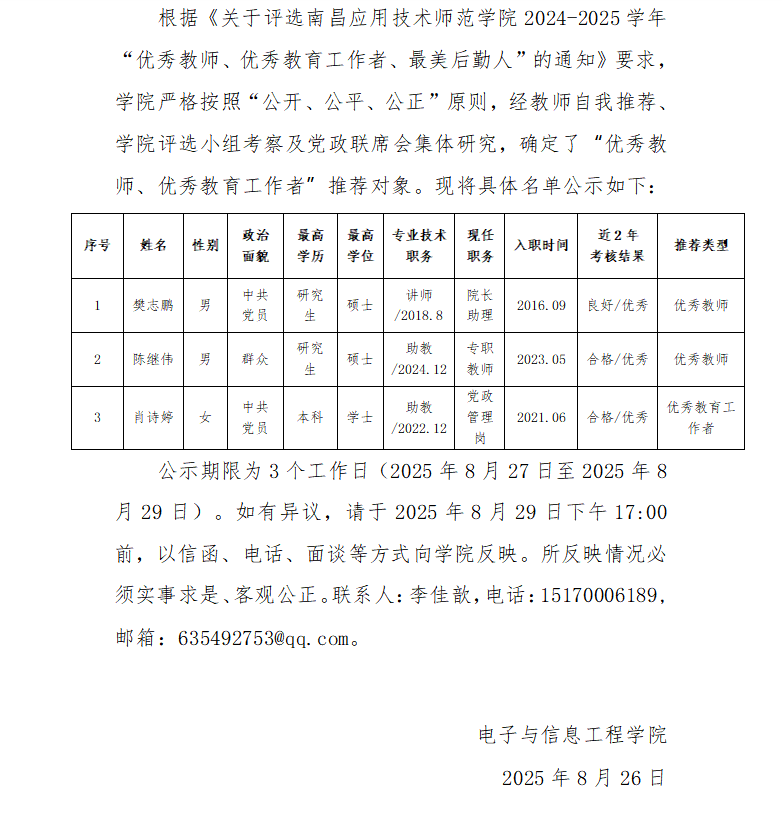 首页栏目 学院新闻 学院公告 学生工作 您现在的位置是:首页 > 首页栏目 > 学院公告 关于 2024-2025 学年“优秀教师、优秀教育工作者、最美后勤人“推荐对象的公示 管理员2025-08-261463 上一篇 关于公开招募今年会官方网站今年会jinnianhuicom2025年迎新志愿者的通知 下一篇 关于拟将李亚琳等7位同志转为正式党员的公示