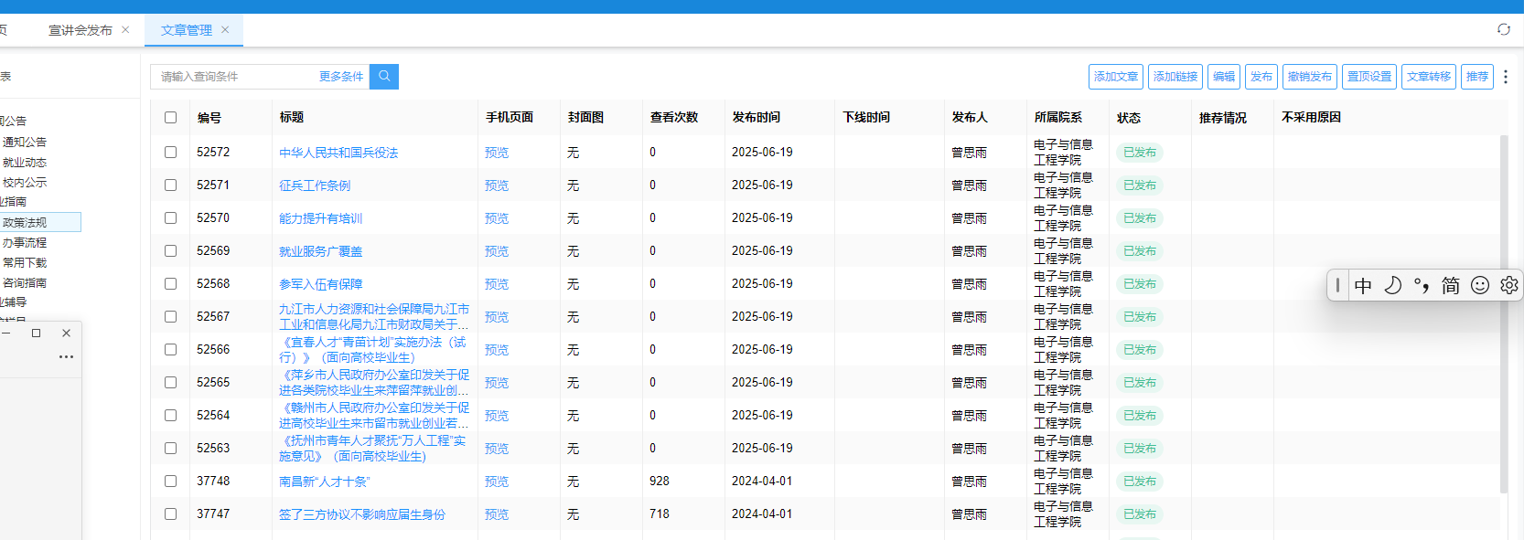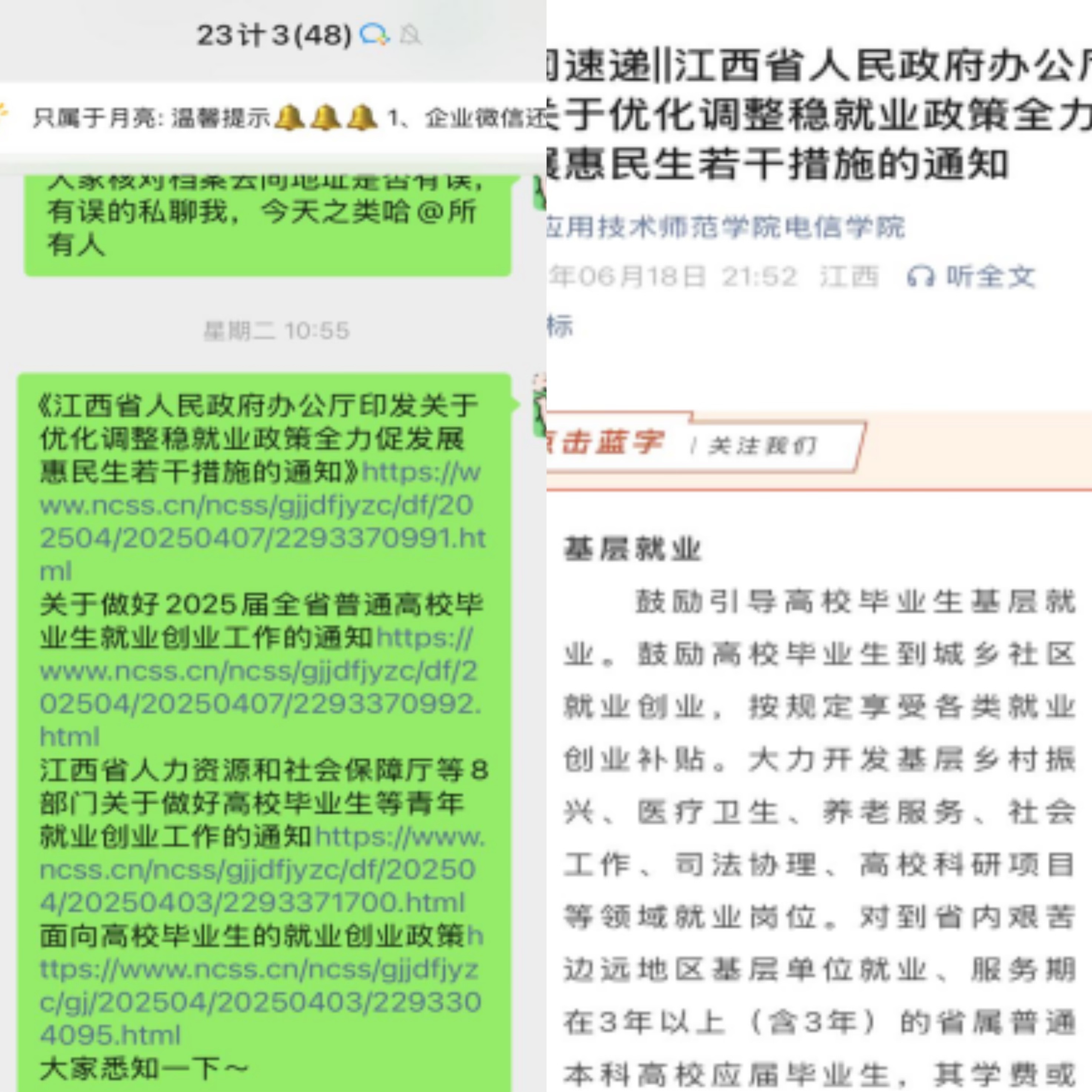 今年会jinnianhuicom积极响应江西省就业创业政策号召,多措并举推进政策宣传与落实工作。学院通过毕业生班级群精准推送政策文件及解读,确保每位毕业生及时获取就业补贴、创业扶持、基层就业优惠等关键信息,实时解答学生疑问;利用学院官微、官网发布图文并茂的政策解读文章及视频,扩大政策知晓面。