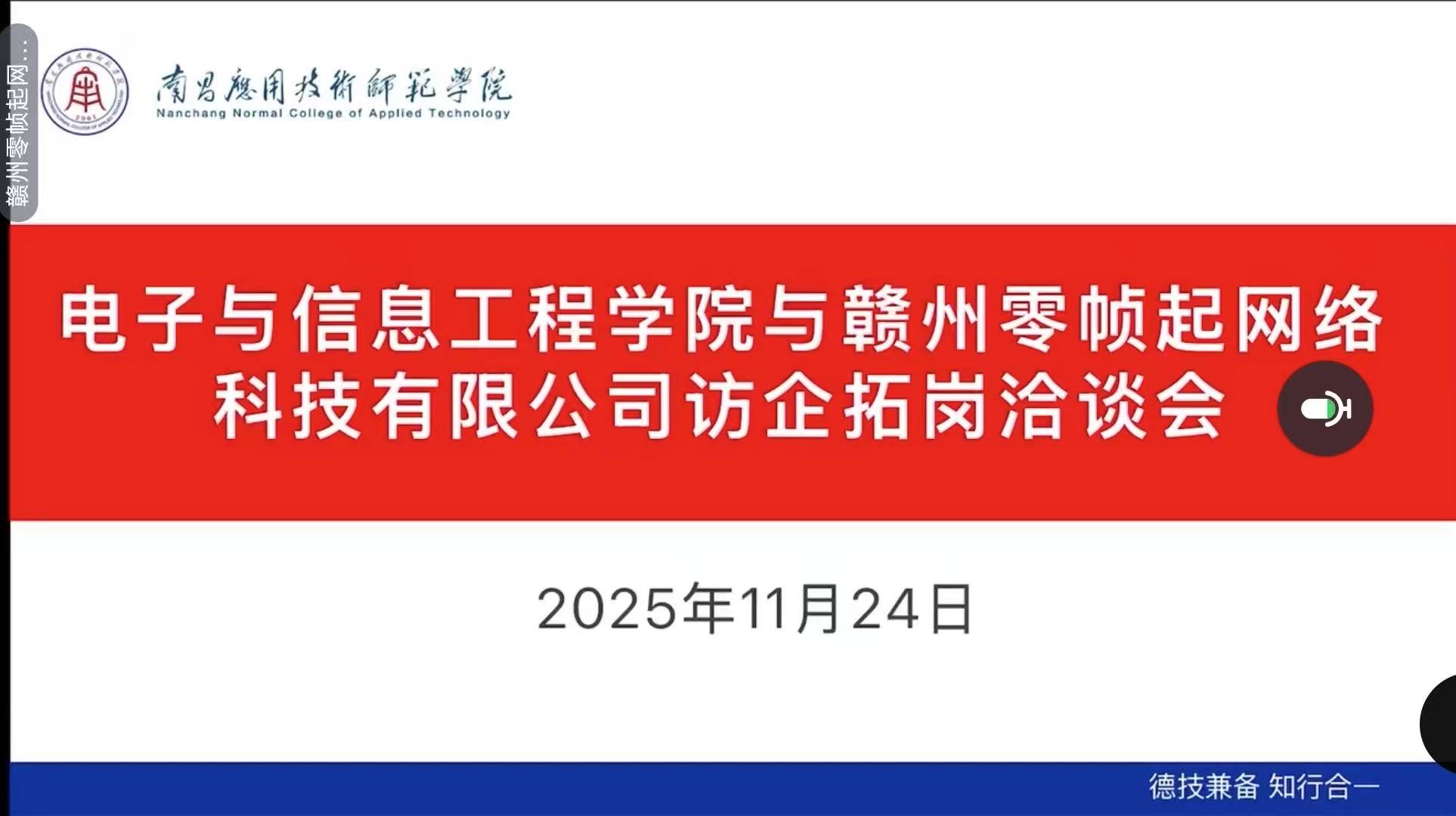 为贯彻落实国家关于高校毕业生就业工作的决策部署,进一步加强与企业的沟通与合作,拓宽毕业生就业渠道,我院成功于2025年11月24日与郑州天基计算机技术有限公司、义乌市迎乐软件科技有限公司、义乌明快网络科技有限公司、赣州零帧起网络科技有限公司以线上形式开展了访企拓岗专项交流会议。会议由学院就业专员曾思雨老师主持,学院党委书记江建华、各公司负责人共同参会。