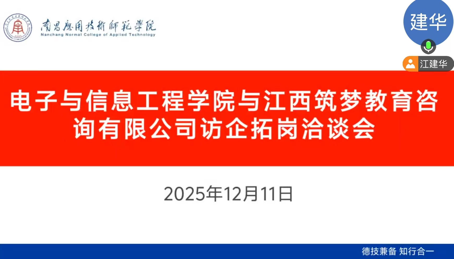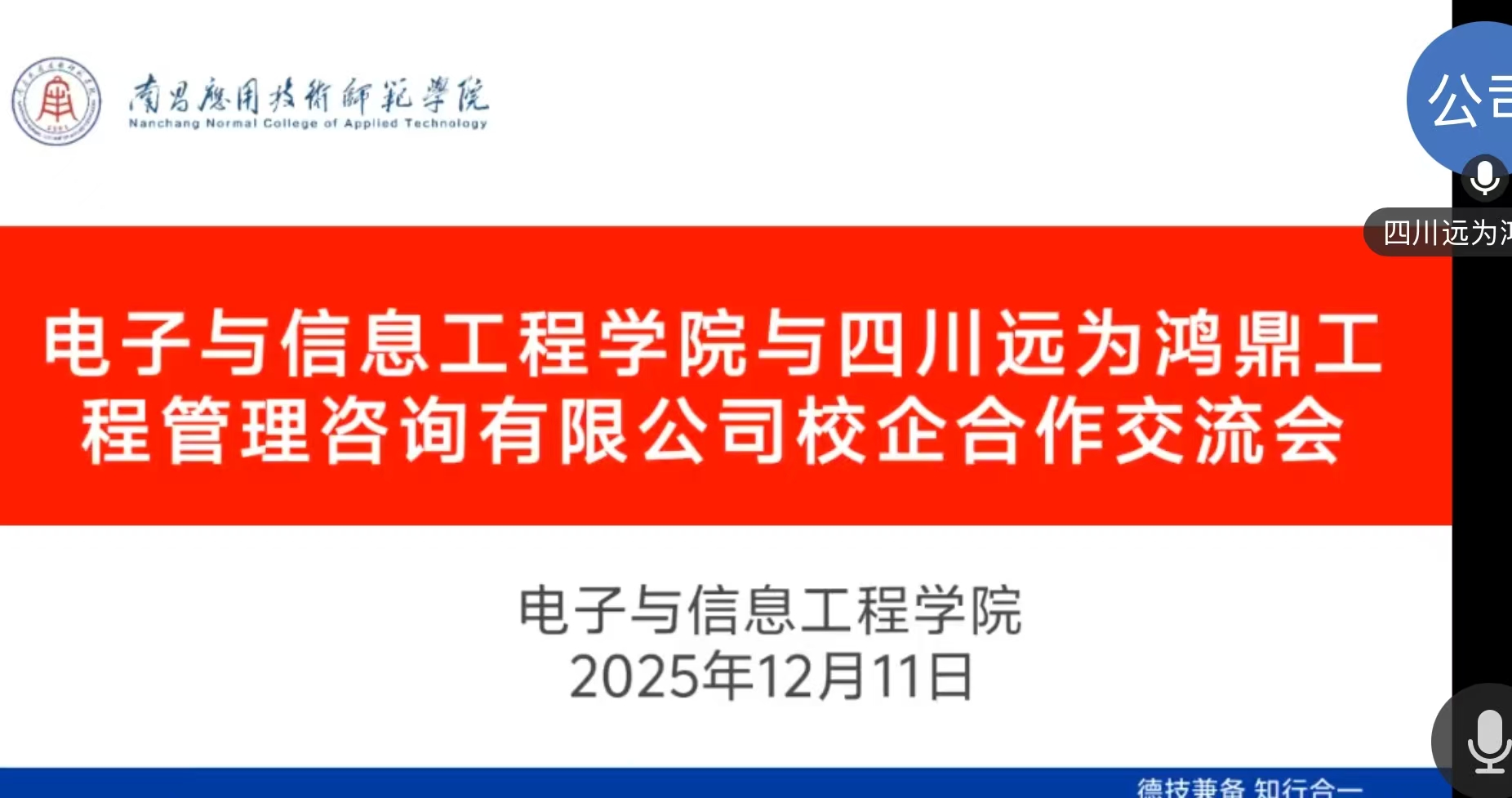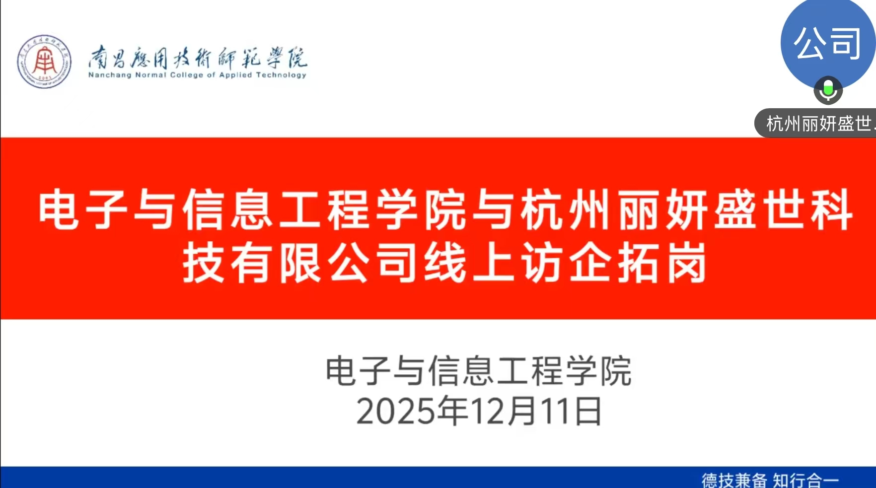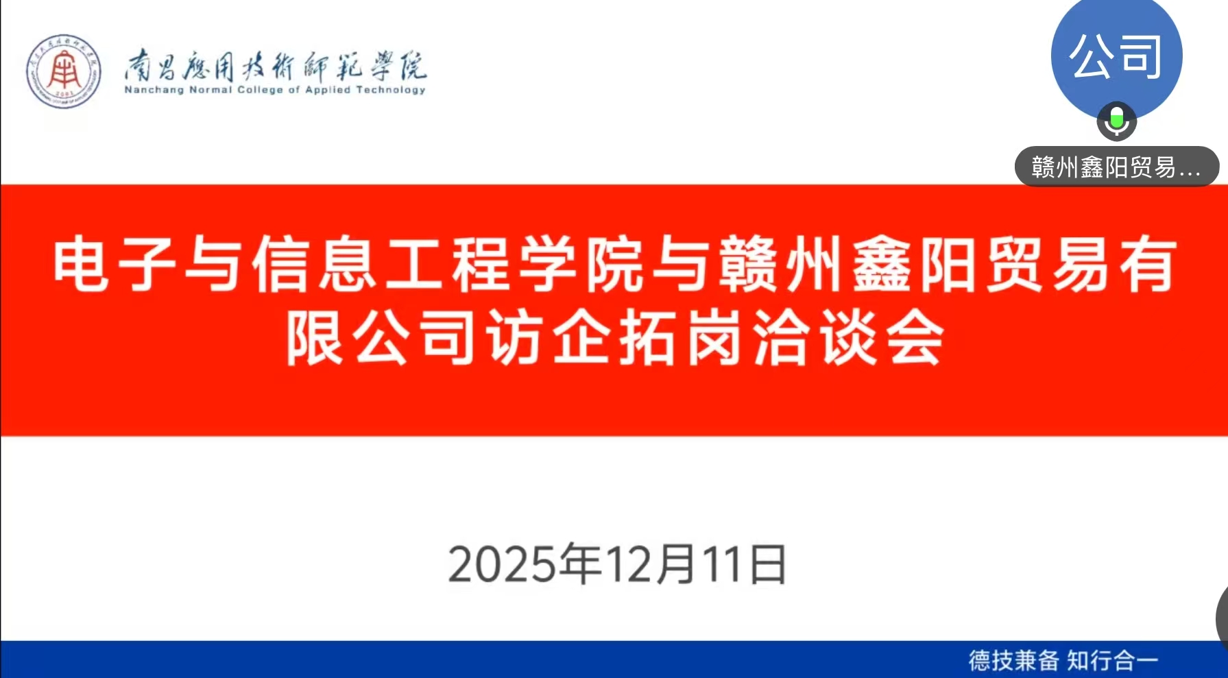 此次线上访企拓岗行动聚焦电子信息、人工智能、通信技术、智能制造等核心领域,精准筛选了包括四川远为鸿鼎工程管理咨询有限公司、杭州丽妍盛世科技有限公司、江西正辉新能源有限公司、江西筑梦教育咨询有限公司、赣州鑫阳贸易有限公司。洽谈过程中,学院党总支书记江建华代表学院向各企业长期以来给予的支持表示感谢,详细介绍了学院的学科专业特色、师资力量、人才培养模式及近年来毕业生就业质量、科研成果转化等情况,并重点围绕2026届毕业生岗位需求、实习实践基地建设、产学研合作项目落地等议题与企业深入交流。