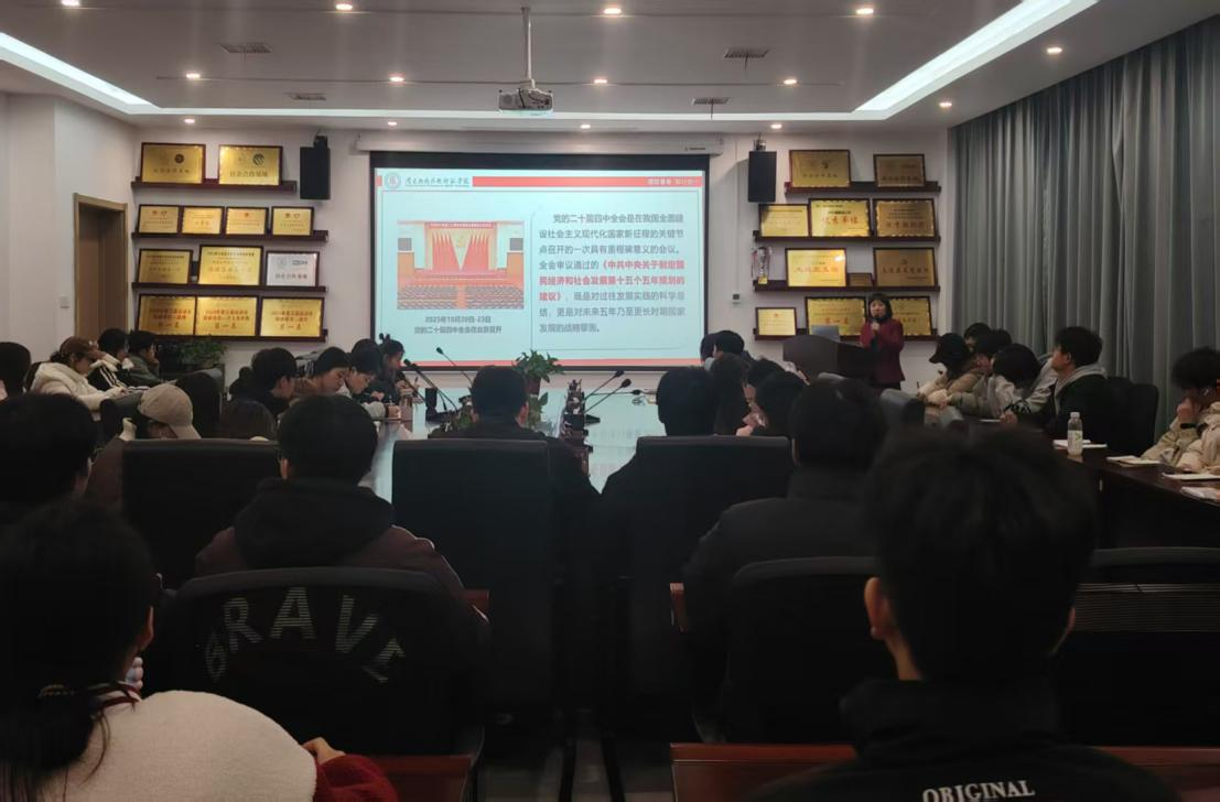 为深入学习贯彻党的二十届四中全会精神,12月18日,马克思主义学院王敬平教授在沁苑5实506党员活动室为今年会师生做学习贯彻党的二十届四中全会精神专题宣讲,全体辅导员、入党积极分子参加宣讲报告学习。