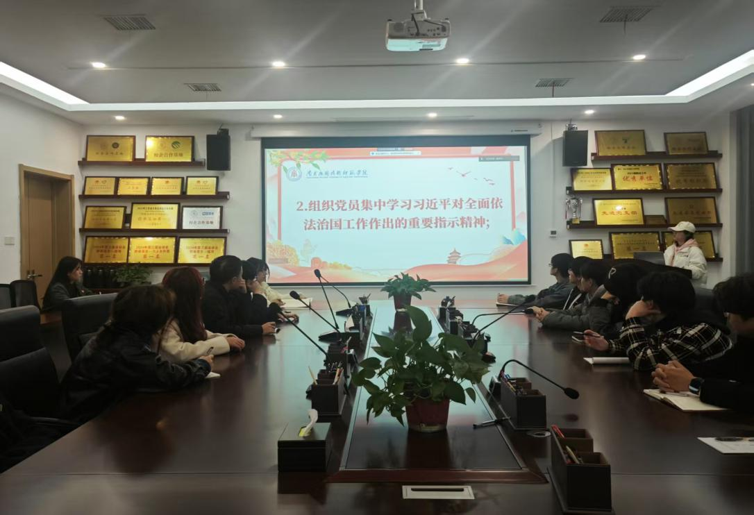 随后,程明珠组织全体党员集中学习习近平对全面依法治国工作作出的重要指示精神。通过结合教育领域法治建设案例与教学工作中的法治要求,党员们深入探讨了如何将法治思维融入日常工作学习,纷纷表示将严格遵守学术规范、践行育人使命,在科研创新中坚守法律底线,在志愿服务中传播法治理念,以实际行动推动形成尊法学法守法用法的良好氛围。