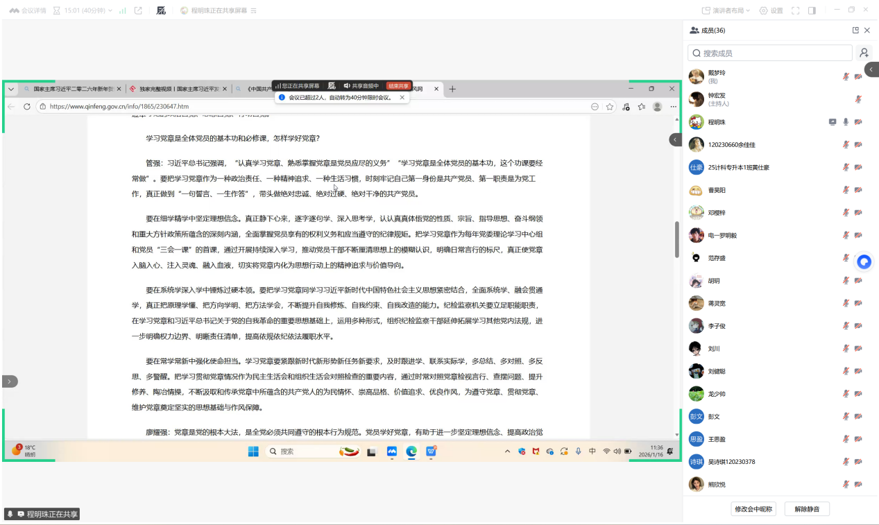 随后,程明珠组织开展《中国共产党章程》专题学习,通过领学解读、交流研讨等方式,进一步强化党员的党章意识和党性修养。党员们纷纷表示将以党章为根本遵循,践行党员初心使命,以实际行动为学院发展贡献力量。