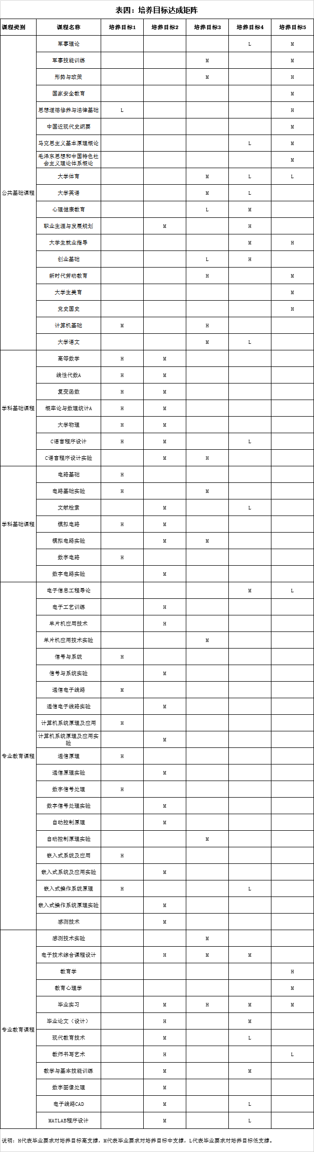 本专业培养政治合格,身心健康,德、智、体、美、劳全面发展,具有从事电子信息类工程工作所需的相关数学、电子技术、信号与信息处理的理论知识,具备运用嵌入式系统开发技术、信息处理技术、智能传感技术解决复杂工程问题的能力,能够在电子信息行业从事智能终端设计、应用、生产与维护等工作,具有创新意识、良好职业规范、新时代工匠精神的高素质应用型人才。