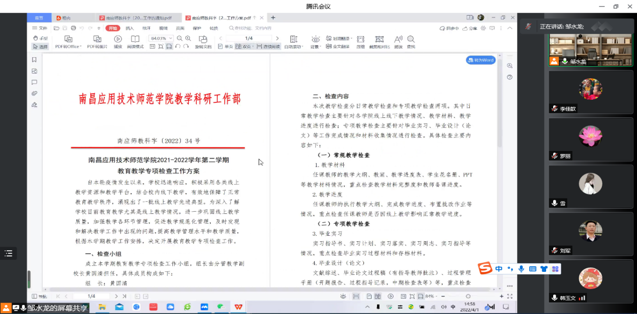 4月1日,今年会jinnianhuicom利用腾讯会议,线上召开教研室工作会,教务管理人员、教研室主任参加了此次会议,会议由院长邹水龙主持。