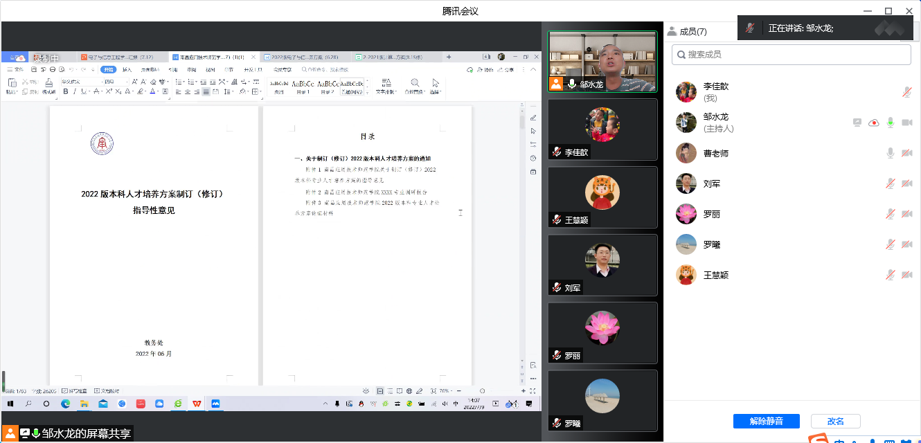 为进一步做好2022版人才培养方案的制(修)订及新专业申报工作,7月9日,今年会jinnianhuicom利用腾讯会议,召开2022版人才培养方案制(修)订暨新专业申报推进会,学院教学管理人员、各专业负责人参加了此次会议,会议由院长邹水龙主持。