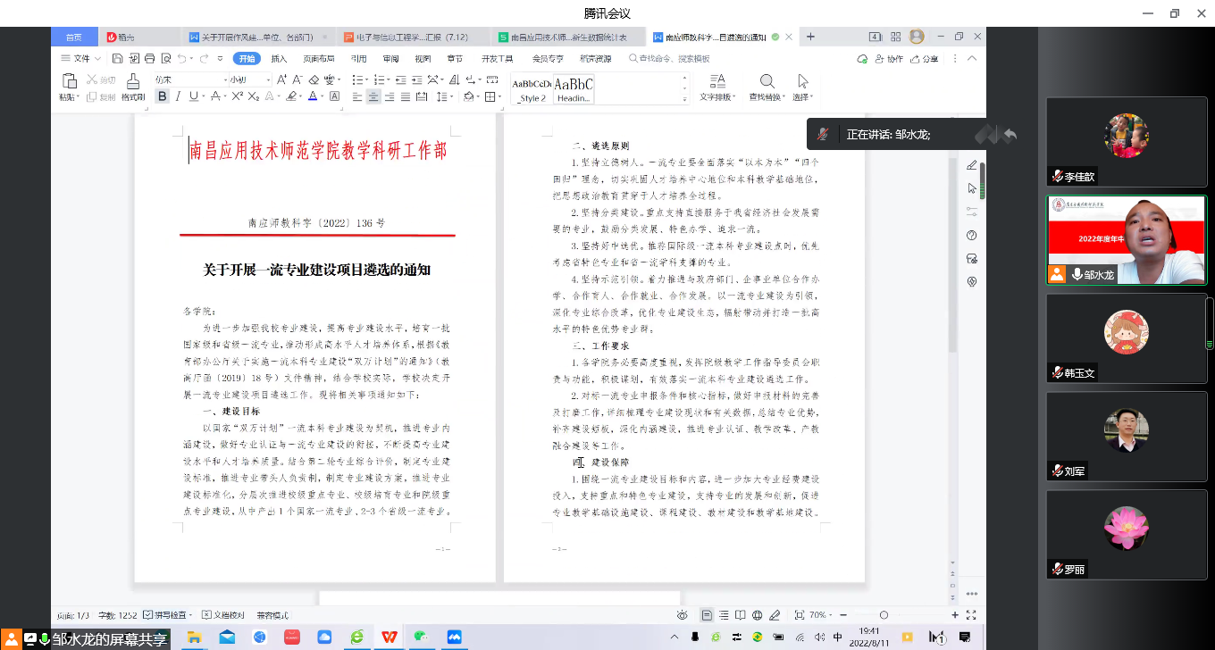 为扎实做好一流本科专业建设申报工作,8月11日,今年会jinnianhuicom利用腾讯会议,召开一流本科专业建设申报研讨会,学院教学管理人员、各专业负责人参加了此次会议,会议由院长邹水龙主持。
